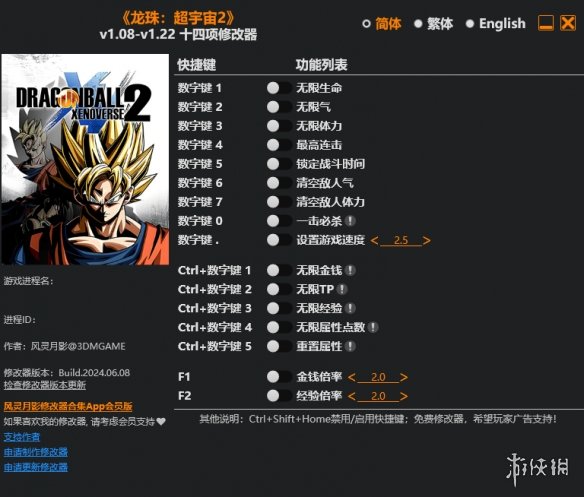 >>十四项修改器风灵月影版【v1.08-1.22】