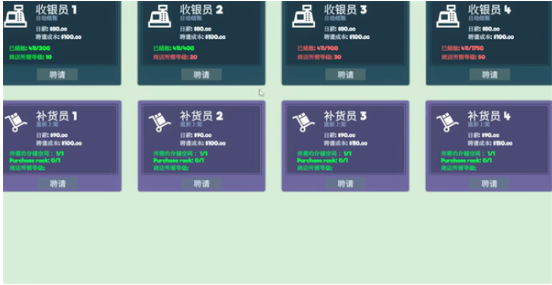 4、补货员数量:玩家最多可以雇佣四个补货员,这将大大减少玩家的工作量,使他们能够专注于进货和定价等其他经营决策。