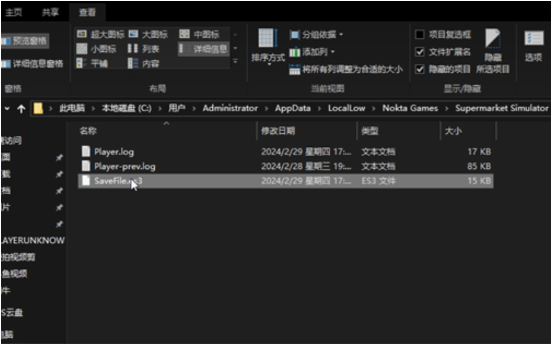 3、依次打开路径`用户-Administratot-APPData-Local-Nokta Games-Supermarket Simulator`。