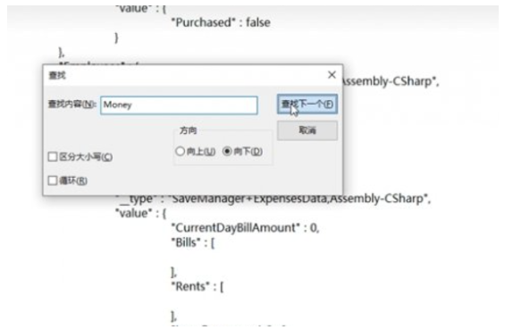 6、在文本编辑器中按下`Ctrl+F`打开查找功能,输入`Money`进行搜索。找到包含`Money`的文本行,将后面的数字修改为你想要的金币数量。
