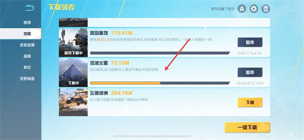 2、在下载列表界面,点击左侧【地图】选项。