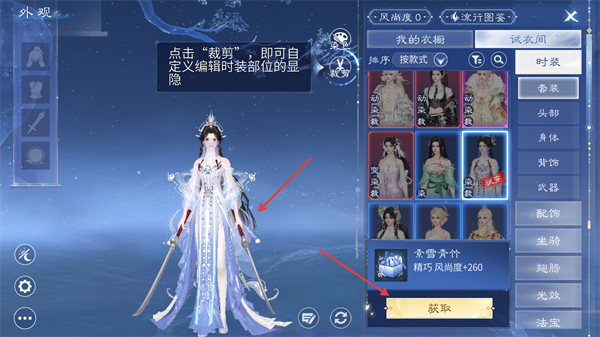3、点击【试衣间】,可查看不同时装的外观效果。