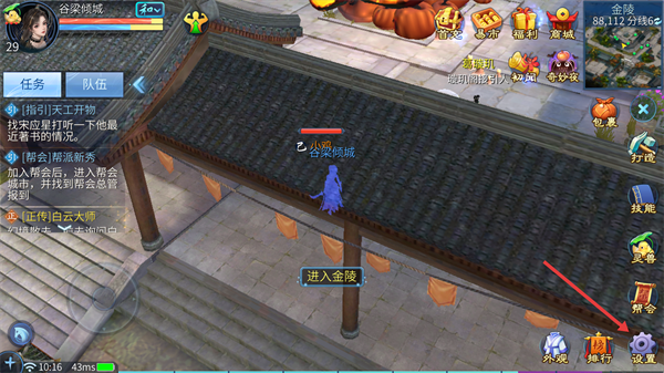 1、在游戏界面点击【设置】,进入系统设置界面。