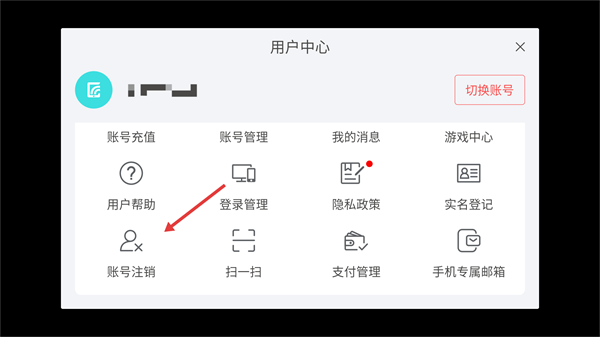 2、找到【用户中心】,进入后可进行账号管理、充值、注销等多种操作。