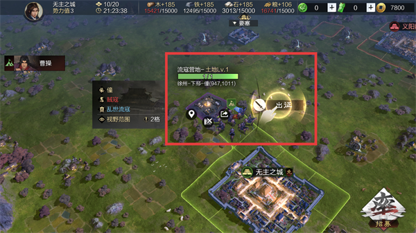 3、占领土地后,可获得木、铁、石、粮等资源增长,持续出征流寇营地等低等级土地,快速积累资源以发展城池。