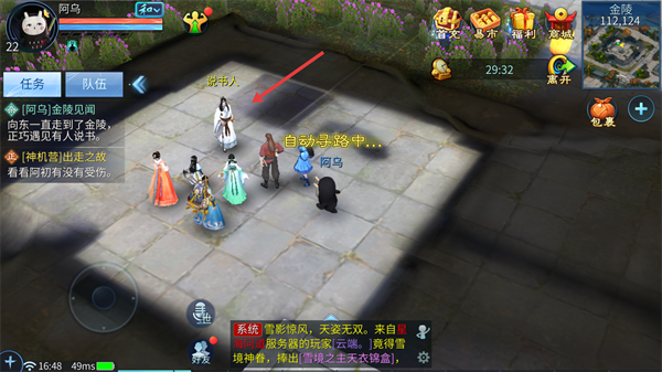2、跟随自动寻路,前往说书人处,了解故事背景。