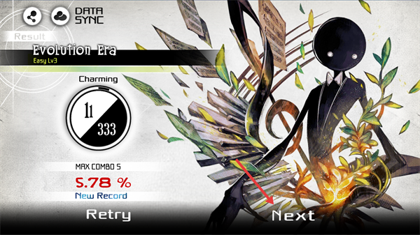 4、演奏结束后,在结算界面点击【Next】,可继续挑战下一首曲目。