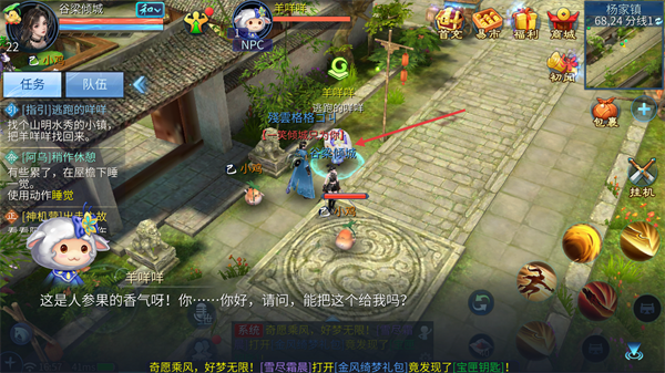 3、跟随系统指引,找到羊咩咩,与其互动。