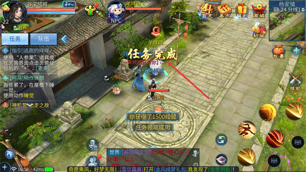 4、完成与羊咩咩的交互,任务完成,获得任务奖励。