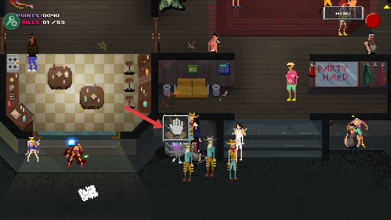 疯狂派对GO移动版 Party Hard GO是一款非常好玩的横版闯关游戏。游戏略带黑色幽默风格,加上独特的像素画质,给玩家不一样的游戏体验。