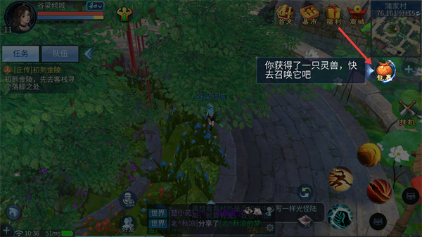 4、召唤灵兽后,灵兽将跟随角色,在游戏中辅助战斗。