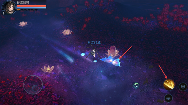 2、遇到怪物时,点击右下角技能图标,进行攻击。