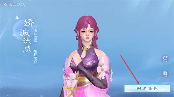 4、完成面容定制后,点击【创建角色】,正式生成你的游戏角色。