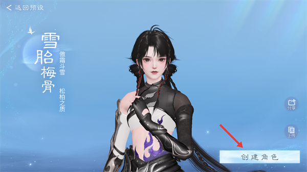 3、在角色预设界面,确认形象后点击【创建角色】,正式建立你的游戏角色。
