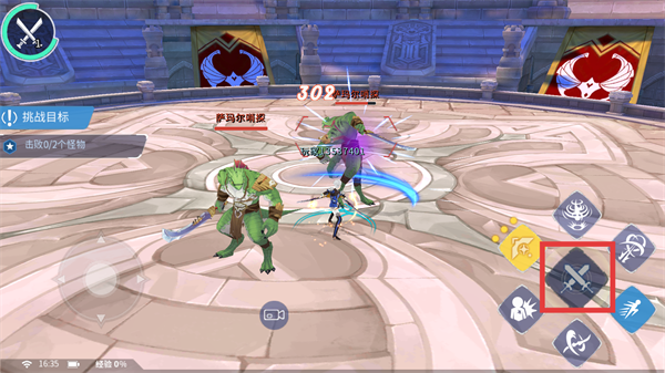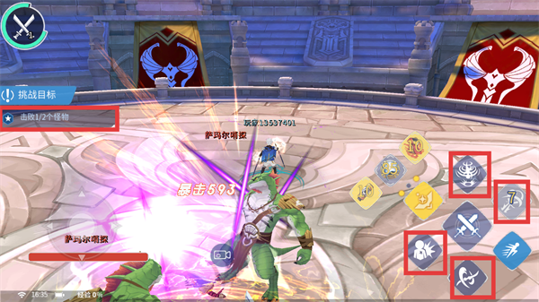 4、搭配多种技能,持续攻击萨玛尔哨探,完成击败2个怪物的挑战目标,争取快速获胜吧。
