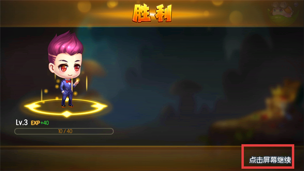 4、战斗胜利后,点击屏幕继续,可领取奖励并开启下一场对战,积累经验快速提升等级。