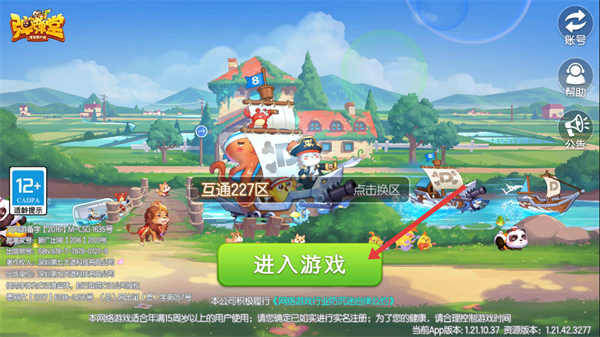 1、选择【互通227区】,确认后点击【进入游戏】,开启弹弹堂弹射对战之旅。