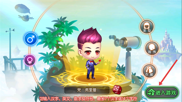 2、创建角色时,可调整【发型】等,设置好后点击【进入游戏】开启冒险。