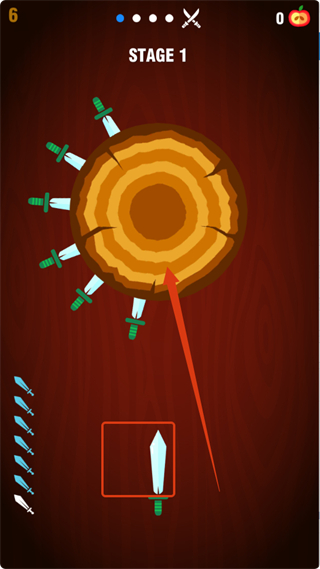 2、在【STAGE1】中,瞄准木桩中心区域扔刀,注意左侧刀的数量,把握扔刀节奏以命中目标。
