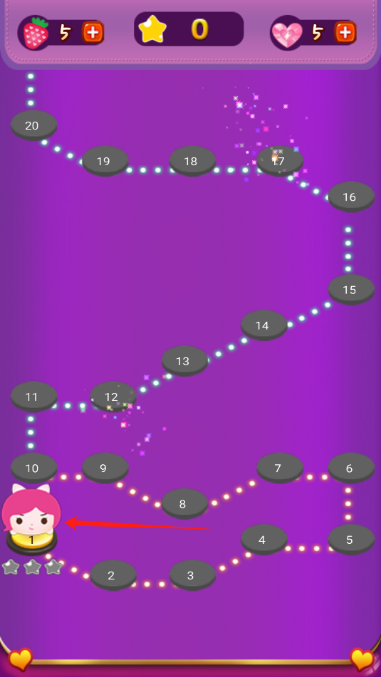 2、选择底部的第一关卡,通关第一关卡可解锁第二关卡。