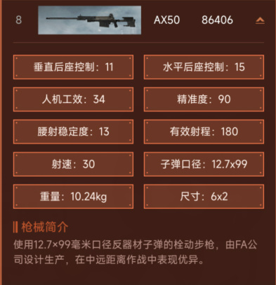 使用12.7×99毫米口径反器材子弹的栓动步枪,由FA公司设计生产,在中远距离作战中表现优异。