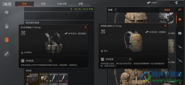 值得一提的是,有一种听起来“不科学”的省地小技巧——套弹挂。弹挂这类容器,一般自身容积比占用容积更大。比如926轻型胸挂只占用6格,但是它却拥有8格容积,如果将其装满物资放入背包带走,就可以多带走两格的物品。