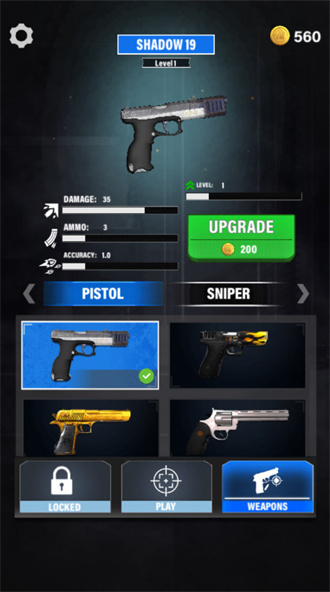 4、能在游戏主页中选择不同的武器装备进行使用,还可以进行武器的升级。