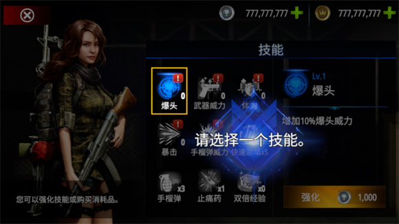 3、在技能页面中选择技能来进行强化,提高战斗时候的射击威力造成更高伤害。