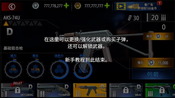 5、打开的武器页面中可以看到各种不同的武器等你来进行购买,还可以进行武器强化,购买武器子弹。