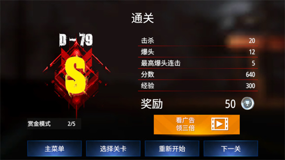 9、击败所有来袭的僵尸即可通关进入到结算奖励中,可以选择下一关,也能回到主菜单中。