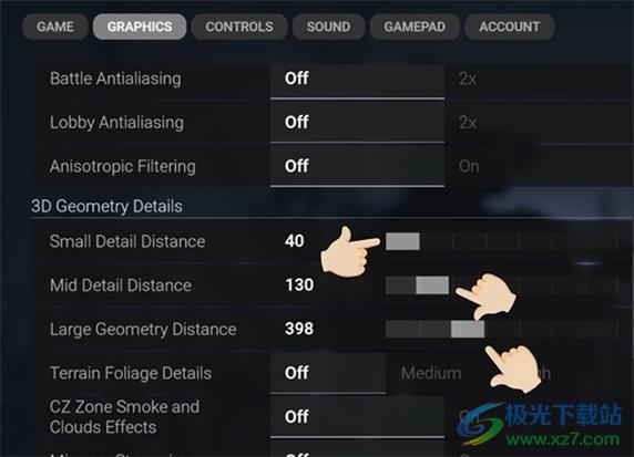 4、按图调整画质,可以将远处的画质降低近处画质升高,增加游戏的流畅度。