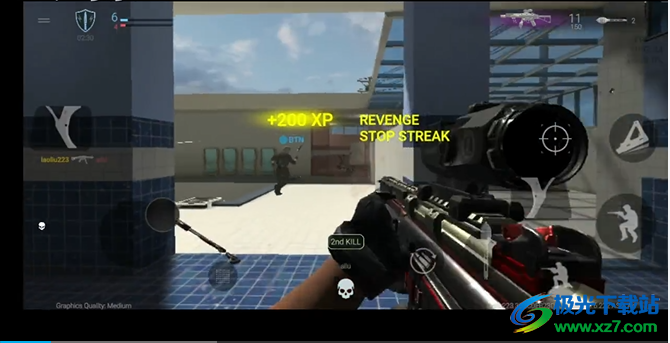 7、进入战斗页面可以看到自己修改好的射击键位,还能切换不同的武器,开始你的射击。