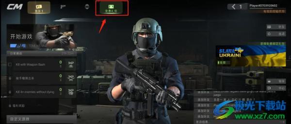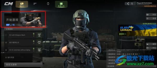 1、在主界面左边有一个非常大的UI板块,写着“开始游戏”,点这里我们就可以在线匹配玩家;