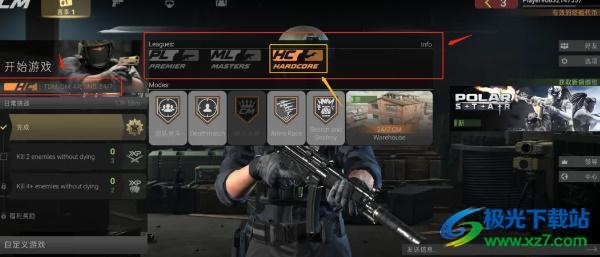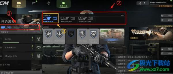 2、其实点这个UI的“正下方”,有PL图标的位置,就会弹出模式选择的选项了,上面三个是三种联赛选择,分别以蓝色(PL)、黄色(ML)、橙色(HC)为代表;