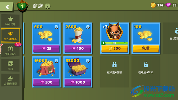 3、钻石可以帮助玩家购买金币和各种宝箱,提升实力。