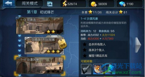 1、扫荡关卡:对关卡进行扫荡了,扫荡只针对三星通关的关卡,扫荡可以获得武器、装备材料,同时也会获取60点经验值,无限制使用,对于玩家来说也算是快速升级的方法。