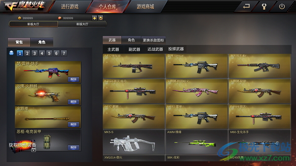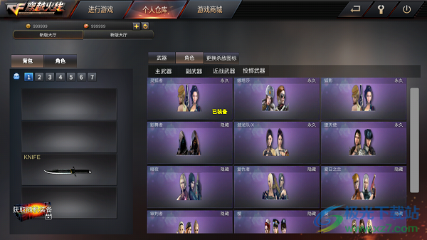 2、在这里玩家们可以进行武器的选择和搭配,角色更换点击其中的角色选项。