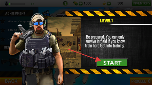1、进入【LEVEL-1】界面后,点击【START】按钮进入训练关卡,开启游戏的入门挑战。