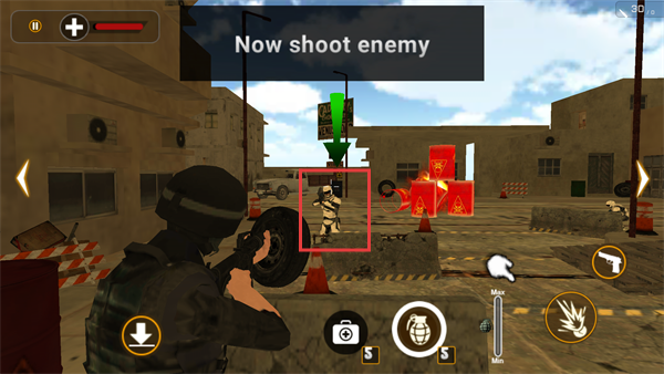 3、随后瞄准被框选的敌人,点击射击键完成攻击,推进关卡进度。