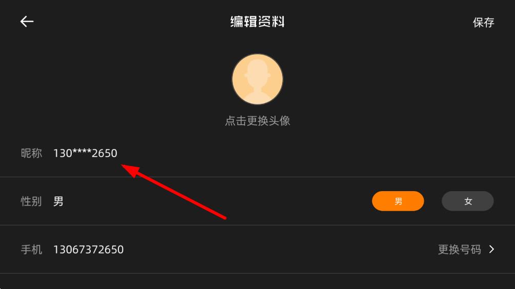4、点击昵称一栏,删除原昵称并输入想要修改的新名字,完成后点击页面右上角的保存,即可成功修改名字和头像。