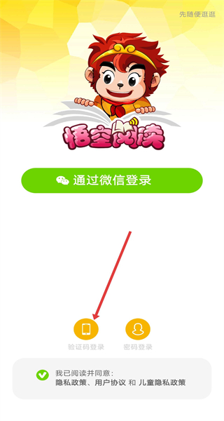 1、点击同意按钮,同意隐私政策概要,进入悟空阅读登录界面。