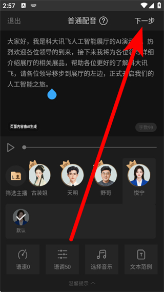 4、设置完成后,点击右上角下一步,即可完成配音制作。