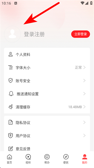 2、在个人页面中,点击登录注册区域的立即登录,进入登录选择页面。
