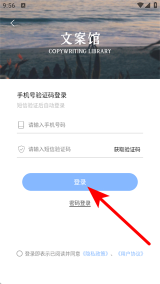 1、打开文案馆APP,点击右下角我的,进入个人的页面。