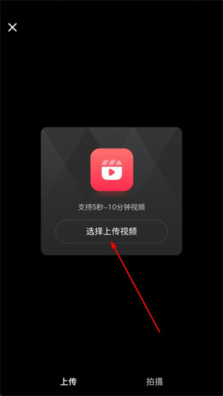 2、在视频上传或拍摄页面点击上传,进入视频选择页面。