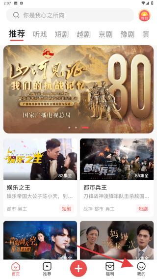 1、打开爆米花视频的APP,进入首页点击我的图标。