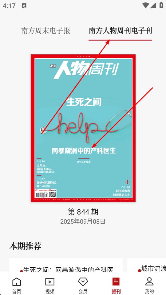4、若想阅读《南方人物周刊电子刊》,在报刊页面点击南方人物周刊电子刊选项。