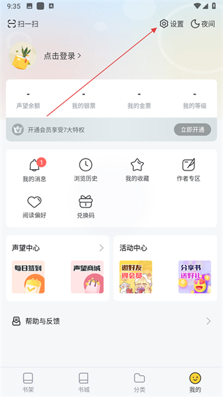 1、打开塔读小说,点击我的选项,进入个人页面。