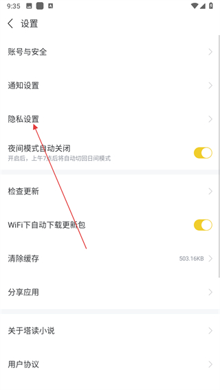 3、在设置页面点击隐私设置选项,进入隐私设置页面。