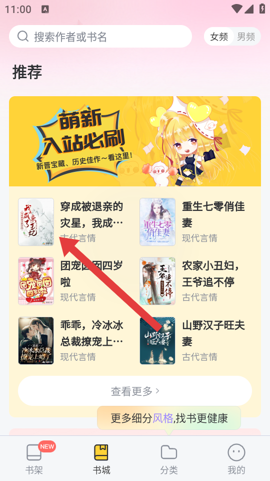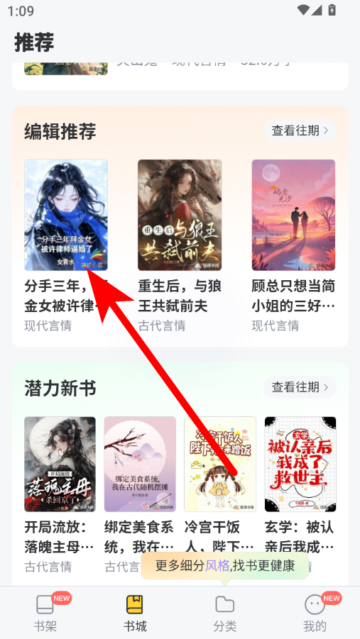 1、在塔读书城的推荐列表中,点击要评价的小说,进入小说详情页。
